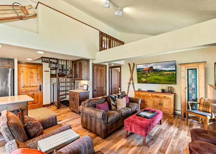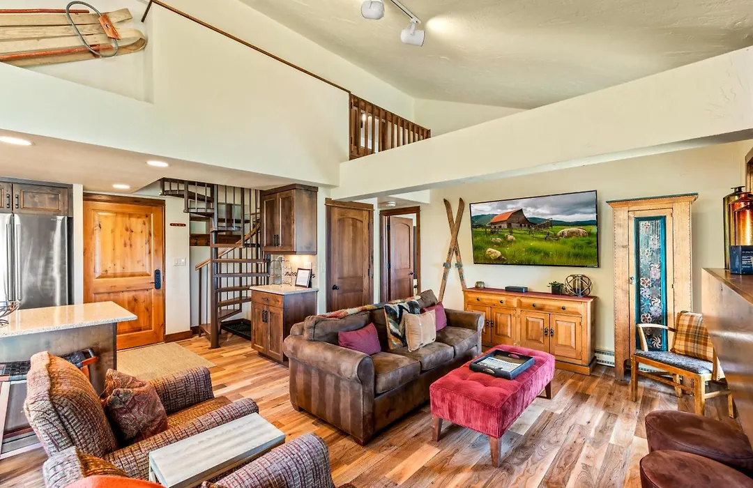 The spacious Bear Claw 404 - Ski-In Ski-Out Condo! Steamboat Springs is 25 minutes' walk from City Market and boasts spa facilities such as a hot tub and a sauna. Offering access to an outdoor swimming pool, the apartment is within a few blocks of the full service Rocky Mountain Day Spa.